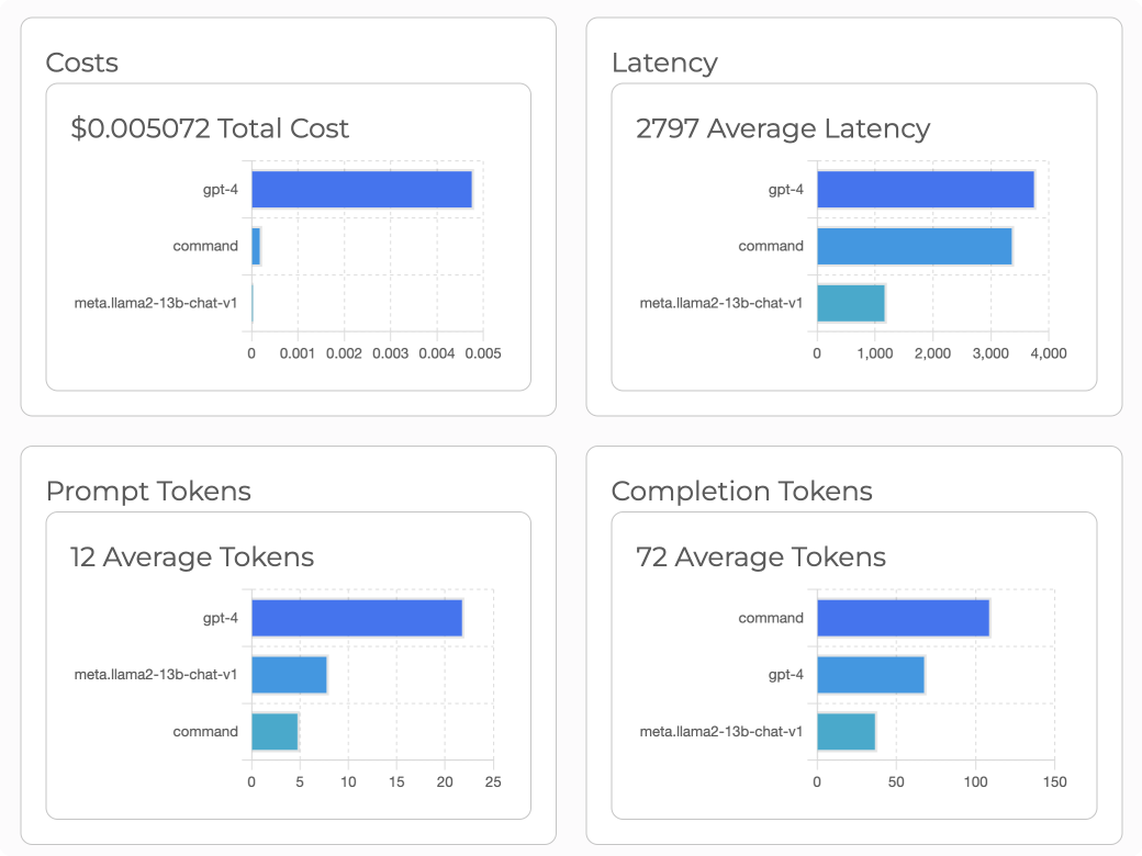 You can also compare the costs, latency, and token usage. This is a great way to quickly test and compare across a wide variety of models.