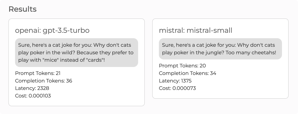 Easily see and compare the quality of responses from different models.