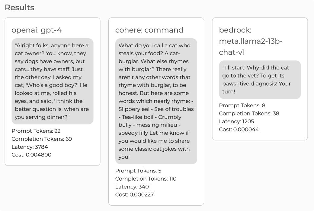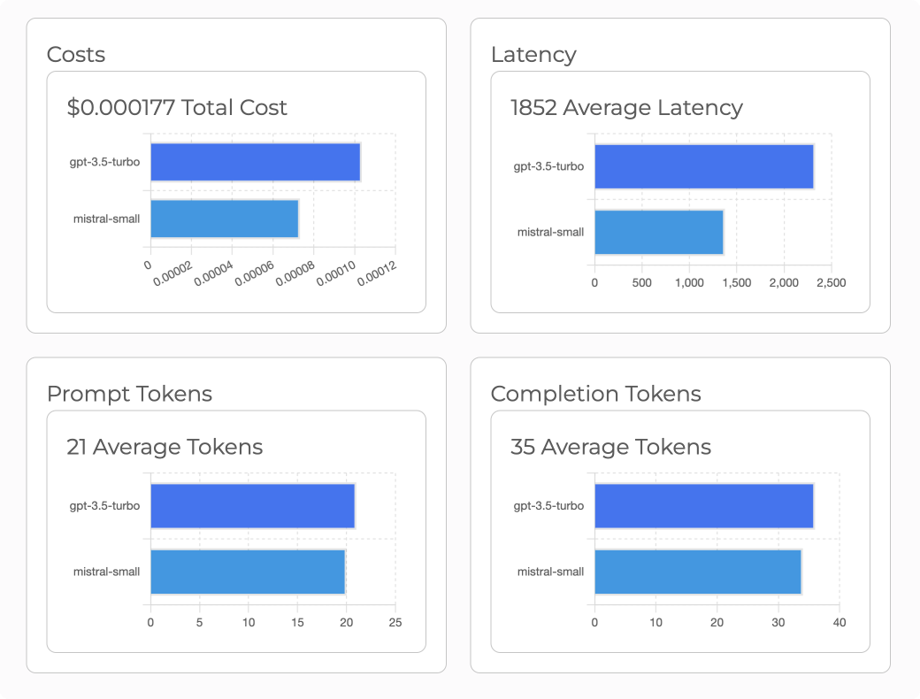 You can also compare the costs, latency, and token usage. This is a great way to quickly test and compare across a wide variety of models.