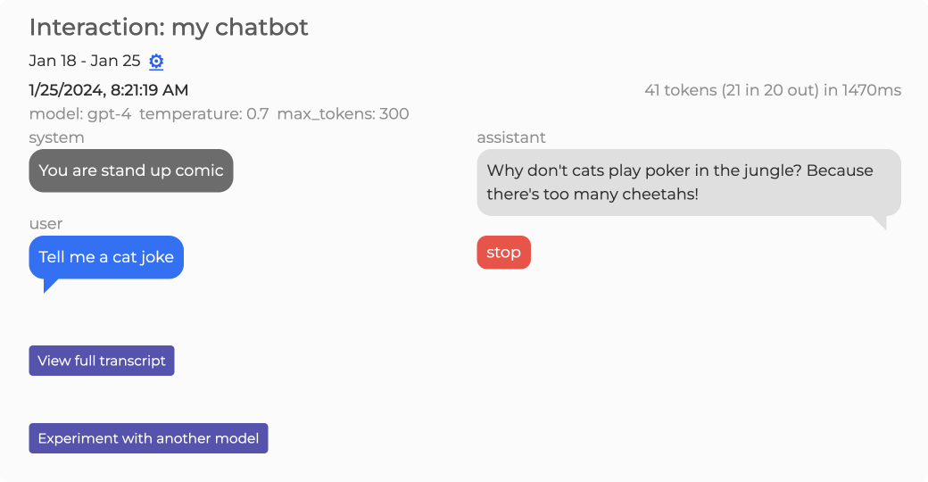 The Experimentation tool is also incorporated into our analytics reporting. You can easily test any prompts received, across different models to see how the results compare.