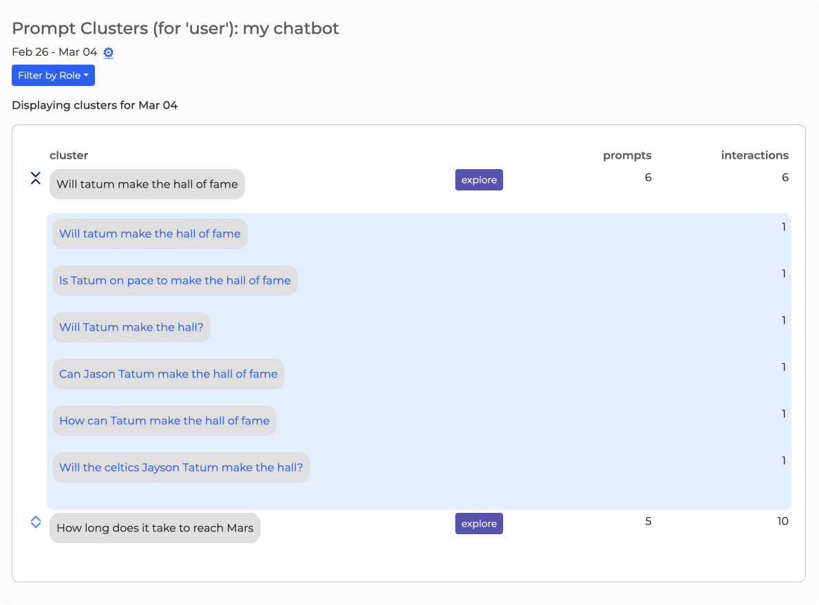 Analyze and compare prompts and responses through semantic clustering to improve prompt engineering and fine tuning models