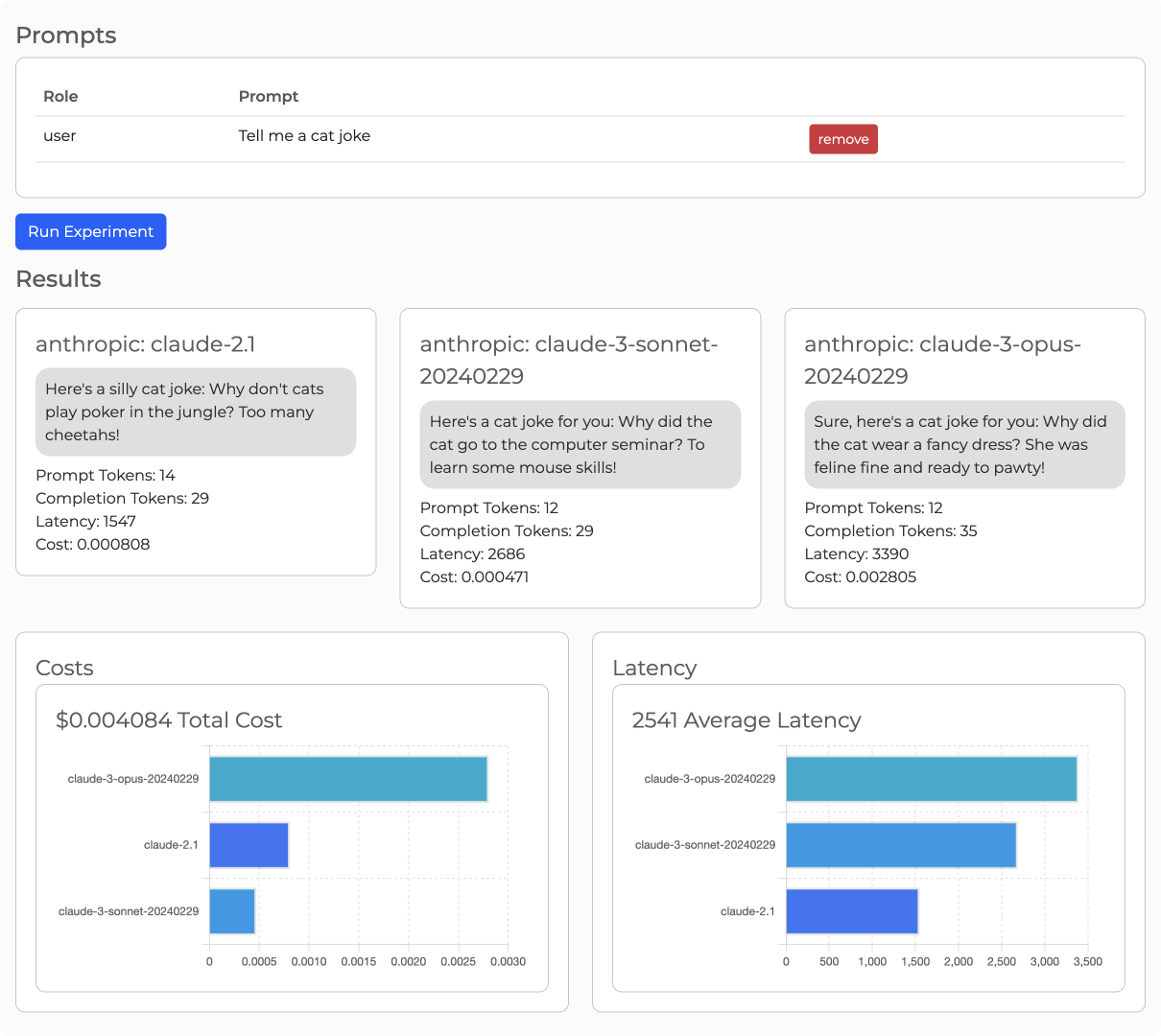 Compare Generative AI models on response effectiveness, costs, and latency. Test and experiment before deploying.