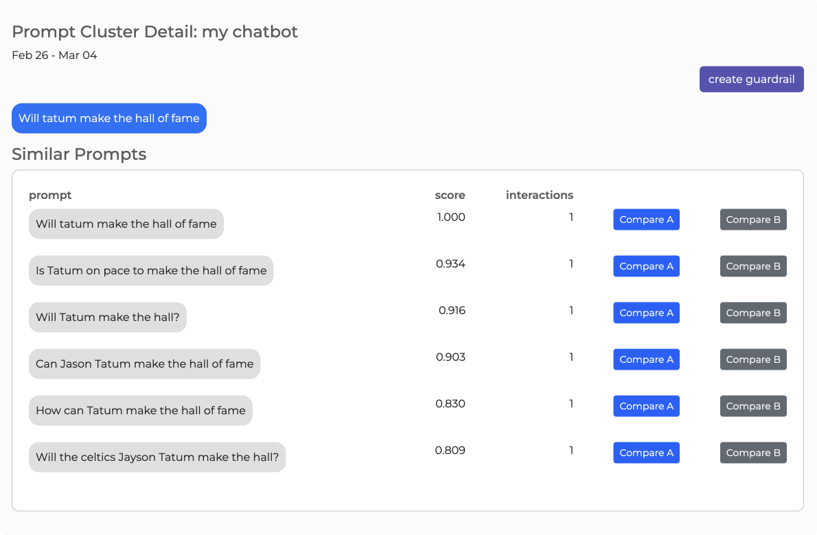 In addition to actionable insights, Reconify provides tools to take action, including Guardrail Alerts to help ensure compliance of prompts and responses.