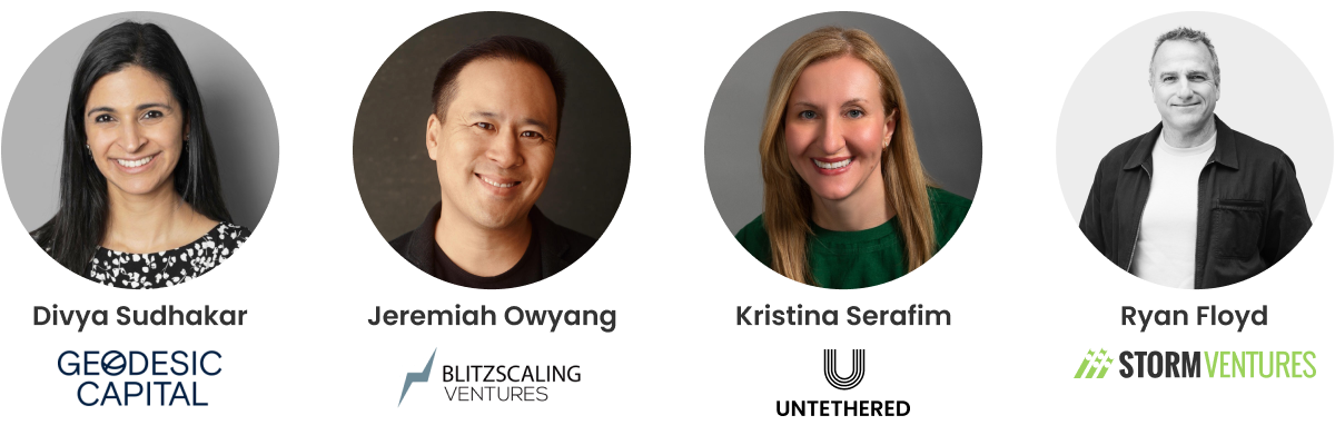 Our panel included Divya Sudhakar, a Partner at Geodesic Capital, Jeremiah Owyang, a General Partner at Blitzscaling Ventures, Kristina Serafim, the founding General Partner at Untethered Ventures, and Ryan Floyd, the co-founder and Managing Director of Storm Ventures.